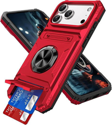 For iPhone 17 16 E 15 14 13 11 Pro Max 8 Case Shockproof Card Wallet Ring Cover