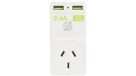 Korjo 2 port USB charger and adaptor Australia and NZ to UK